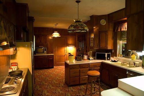 Lily's ‘bath in the lounge’ look did make me wonder about other cringey or wrong-feeling design choices that have had surprising longevity. I suppose a carpeted kitchen isn’t ideal but it seems to fit the overall look below: